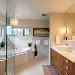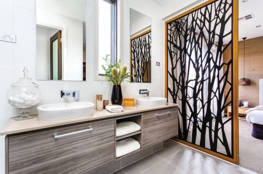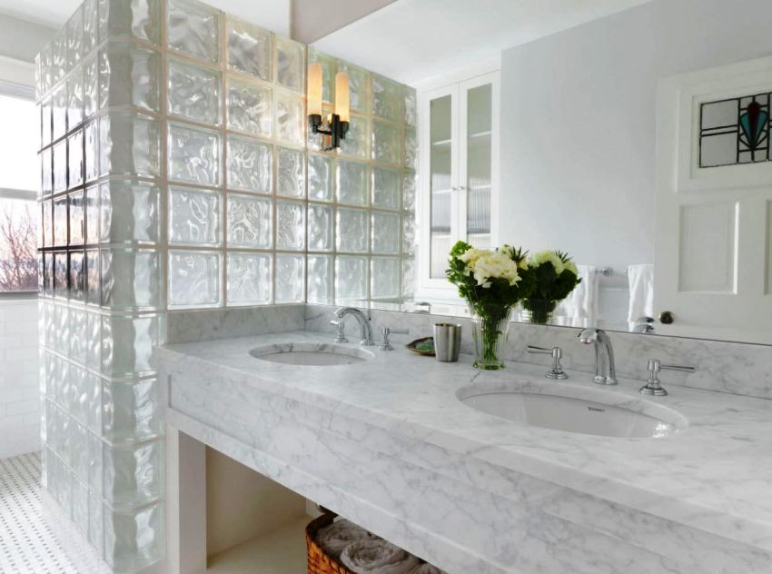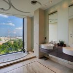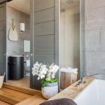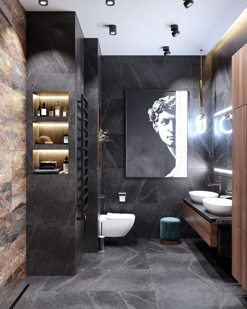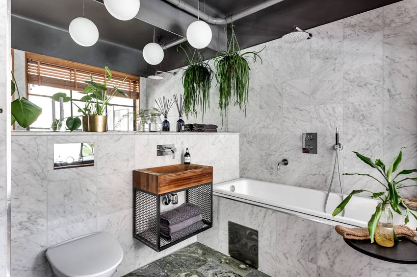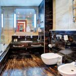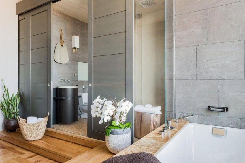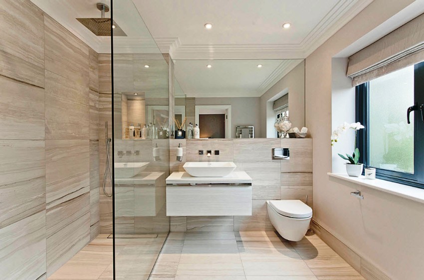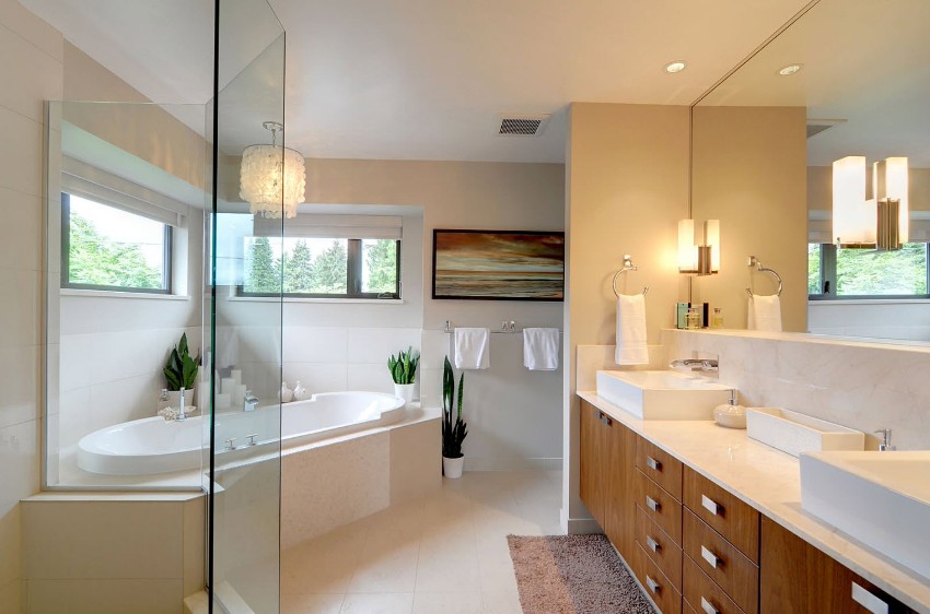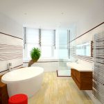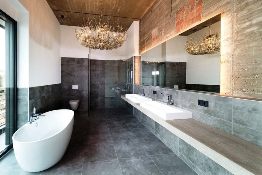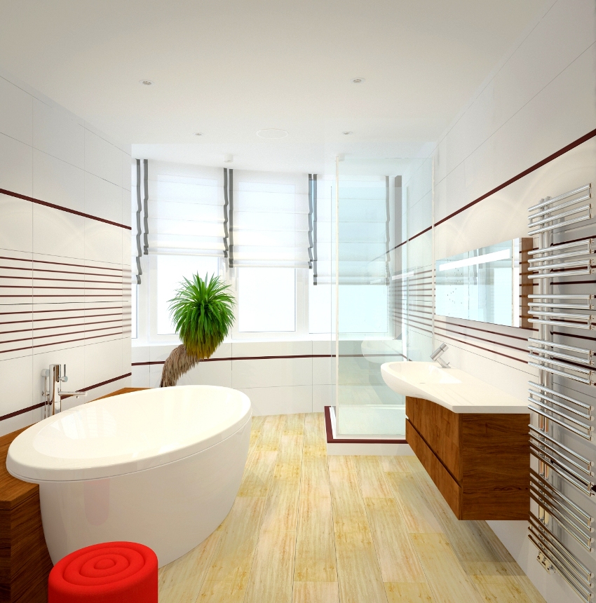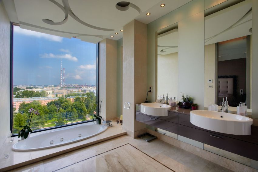 The presence of a large bathroom gives many advantages to the owners. In such a large space, zoning must be done correctly. For example, using decorative plasterboard walls, you can divide a large room and organize an additional bathroom for guests with a separate entrance.