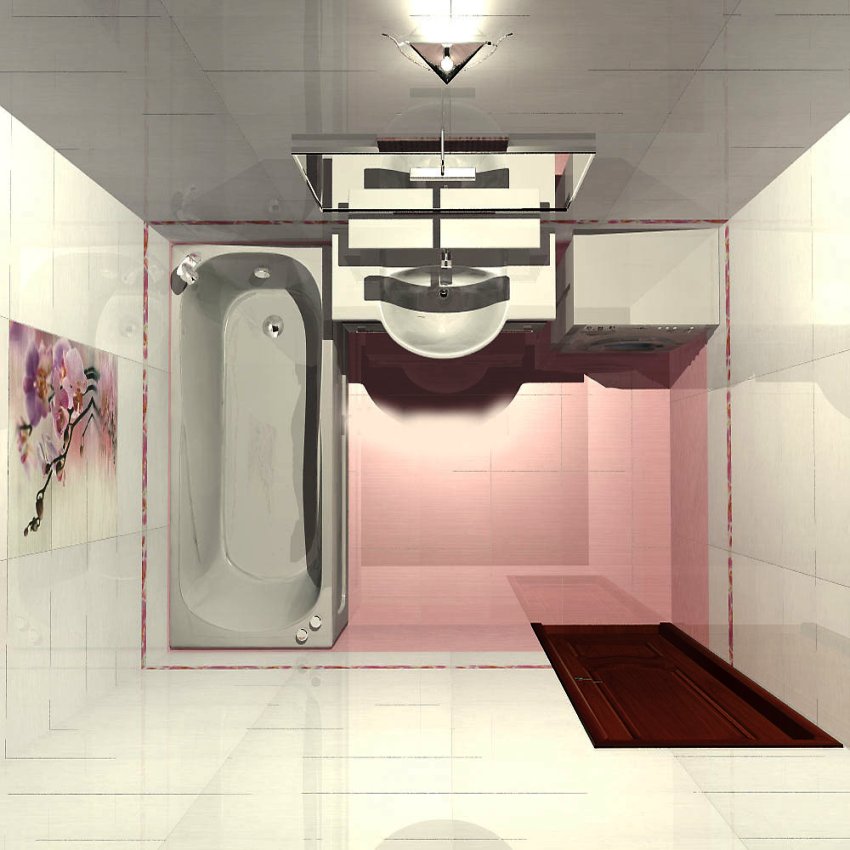 Bathroom 3 sq. m. still refers to small, but nevertheless makes the process of decorating a room much easier.If we are talking about a square or rectangular room, then it is better to place a bathtub and a washbasin in the corners, and fix the toilet on the wall opposite the bathtub. When installing a toilet, more attention should be paid to the outlet of the sewer pipe than to the convenience of location. This is due to the fact that it is not recommended to make a sewer corrugation more than one meter long. With the corner arrangement of the main plumbing fixtures, you can leave enough space for installing a washing machine or a basket for dirty laundry.