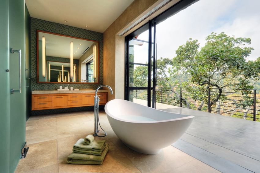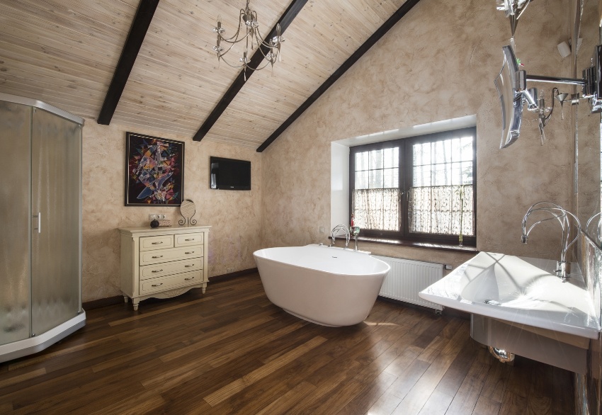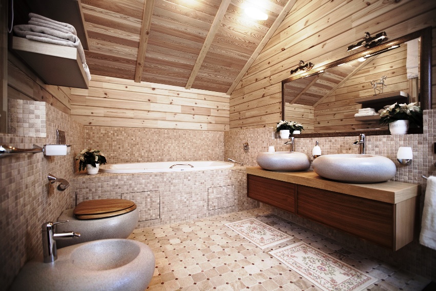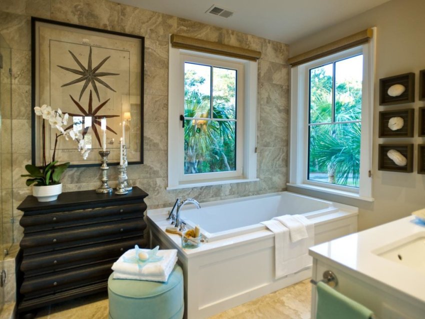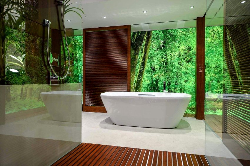 Useful advice! If the bathroom in a private house has a window, then it is better to place the bath opposite so that you can relax while admiring the view of the green spaces. It is recommended to arrange this option in a room that is located on the second floor, and in the event that the window does not overlook the neighbors' houses.