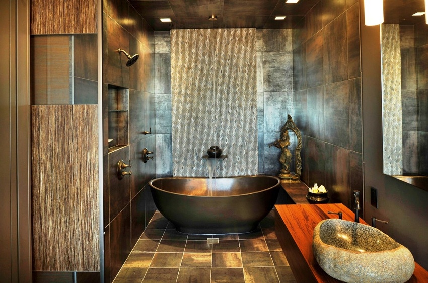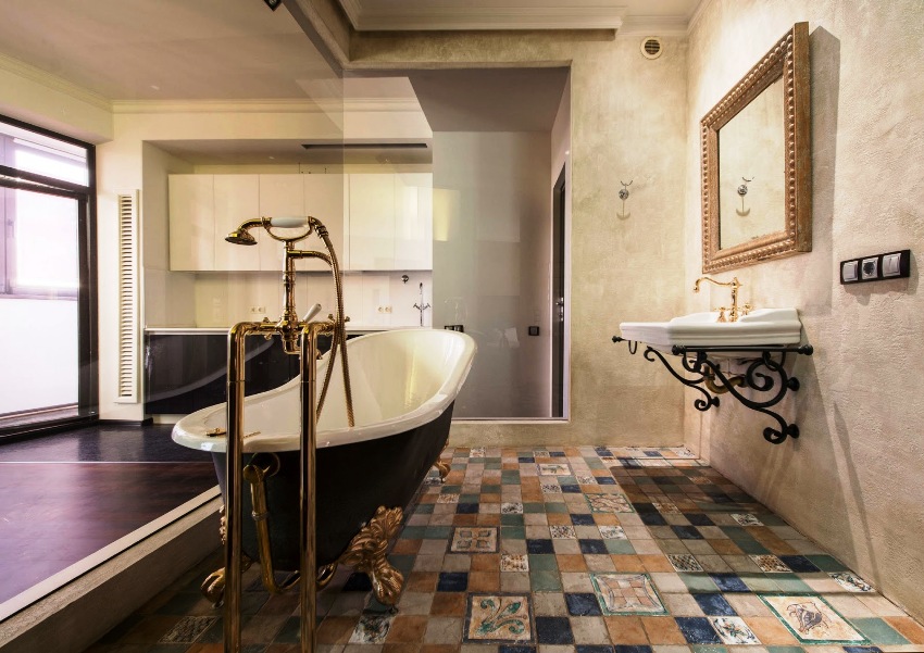 A bathtub looks very beautiful in large rooms, to which steps lead, and the bowl itself rises above the floor level. This option should not be issued if the bathroom will be used by the elderly, disabled or small children, for whom the steps will not only create significant discomfort, but also become an additional element that is dangerous.