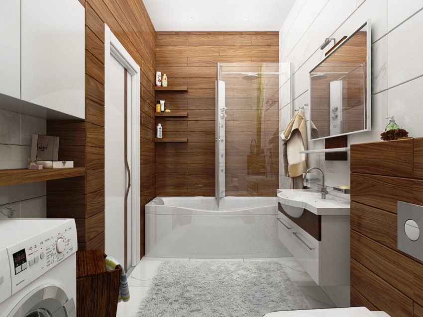 It is necessary to decide in advance whether the installation of a bath is exactly required or whether it will turn out to be limited to a shower stall, because this technique will significantly save space. If the apartment is supposed to design a bathroom without a toilet, it will be much easier to properly organize the room and install at least a washing machine, which is not recommended to be placed in the kitchen.