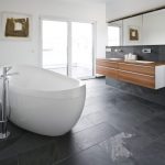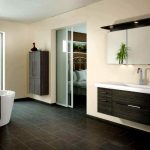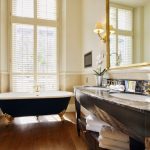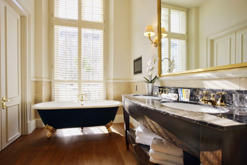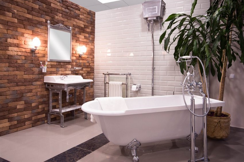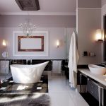 Not only a bowl on a pedestal looks attractive in a large room, but also a model on unusual, beautiful legs, installed in the center of the room. A washbasin is attached to the side of the bath, and the toilet and urinal are separated from the main area. If several women use the bathroom at the same time, a large number of shelves, drawers and cabinets for cosmetics will be more useful than ever. During the development of a bathroom project, you need to take into account such details that at first glance seem unimportant: