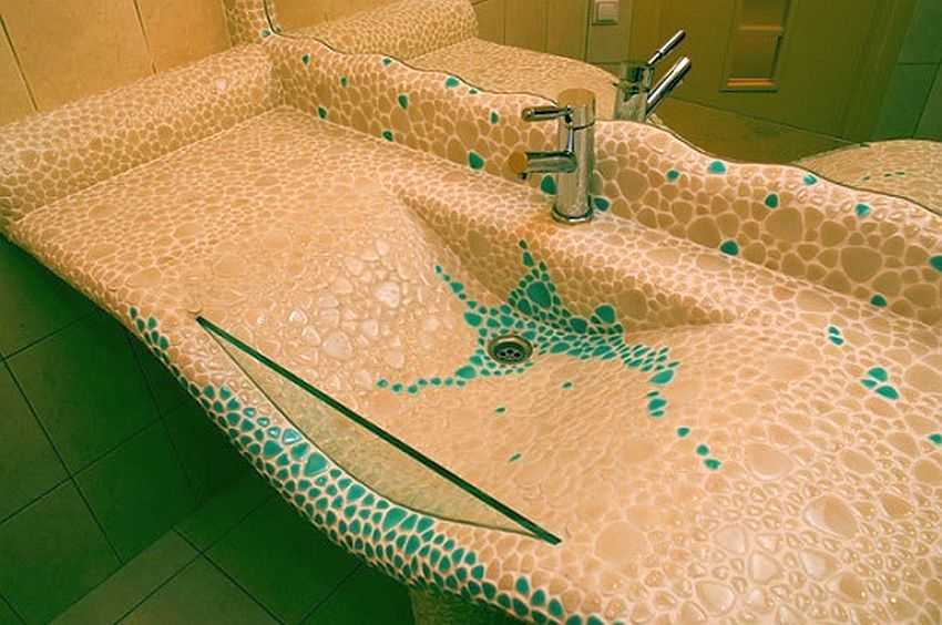 A hand-made countertop in the bathroom will not only bring pleasure from creative creative work, but also become a solid and reliable structure, resistant to the constant companions of the bathroom - high humidity and temperature drops.