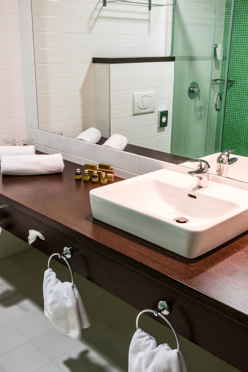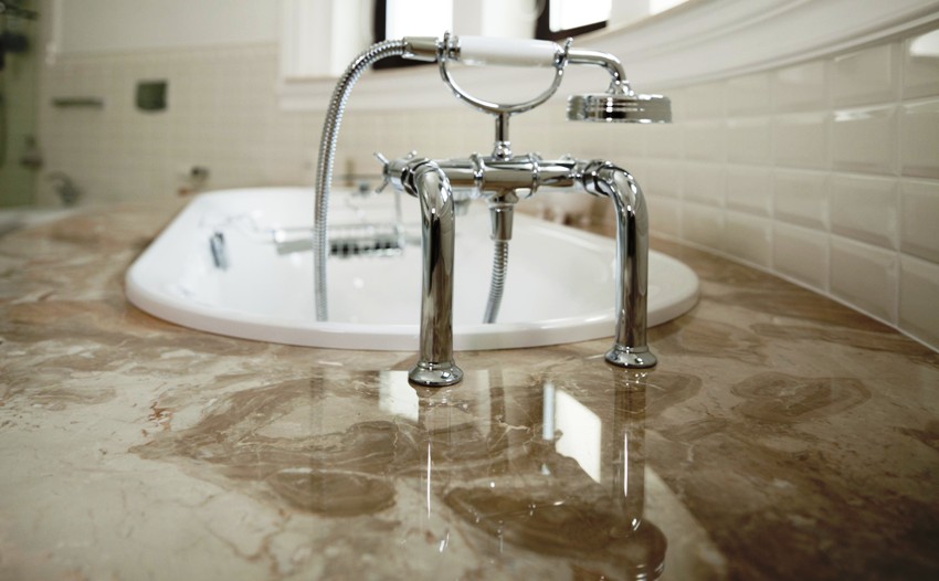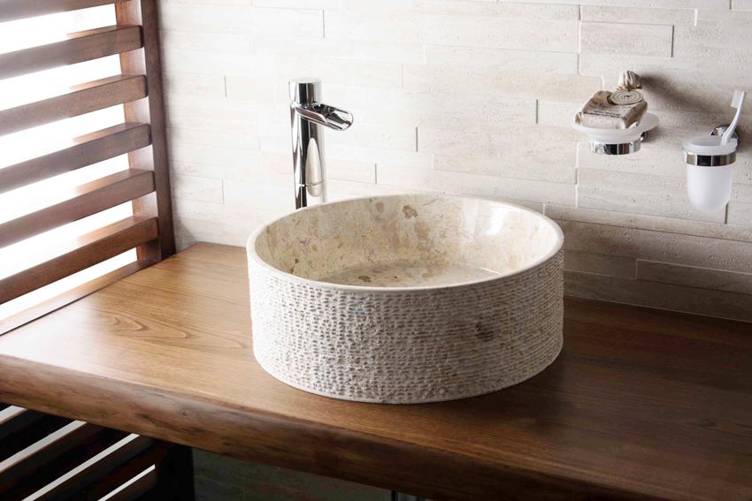 Practicality and elitism: bathroom countertop under a natural stone sink