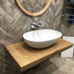 - A wooden countertop is being carried out under the sink in the bathroom. It must be done on sturdy stands.