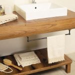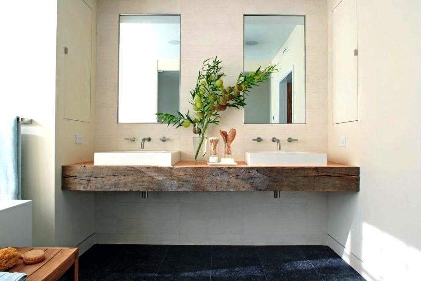 Wooden bathroom countertops are made mainly of oak, larch and teak.The structure of these trees is quite dense, which does not allow moisture to penetrate into the pores, the products do not swell or crack. Moisture resistance is enhanced by the processing of external surfaces: the countertops are impregnated, they are painted. With good preparation, wooden structures can be used in bathrooms for more than a dozen years.