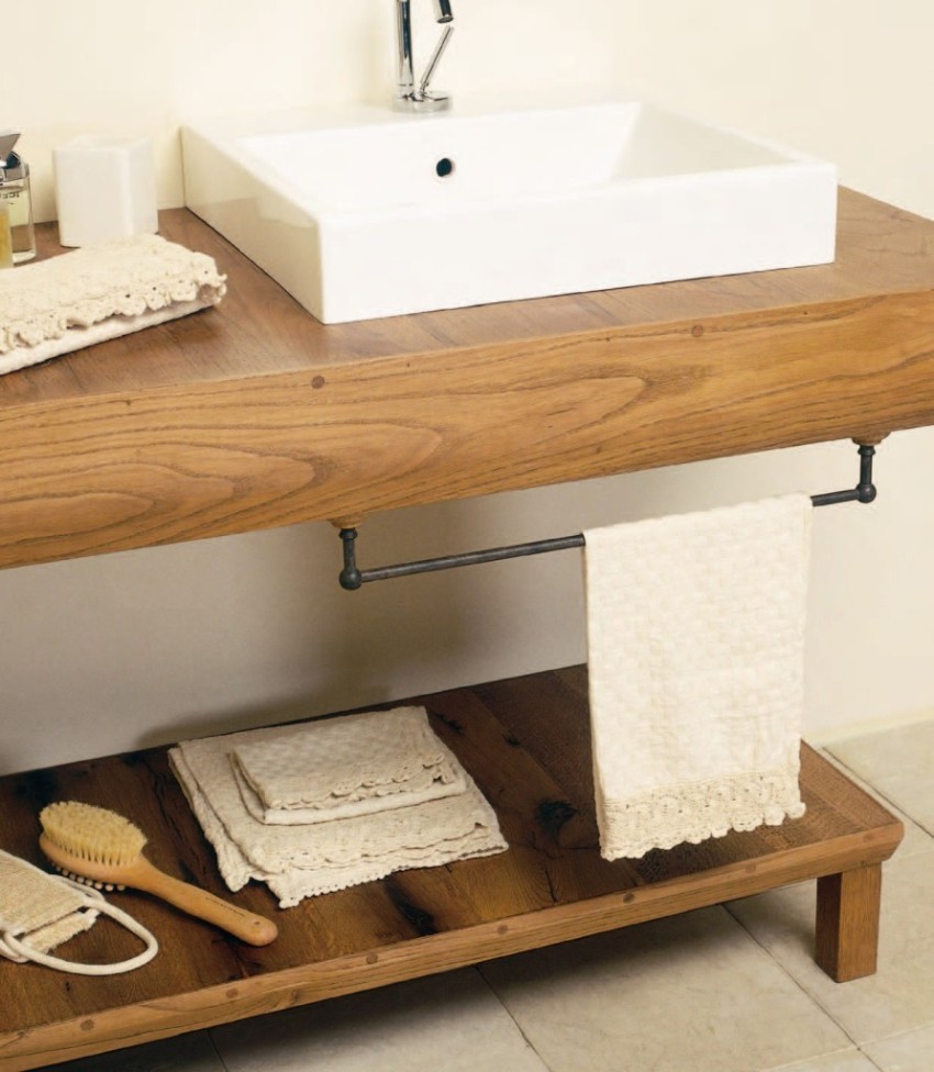 - The countertops in the bathroom under the wooden sink should be oiled. For this you need to use a special oil. Before rubbing, the wood must be heated to a warm state.