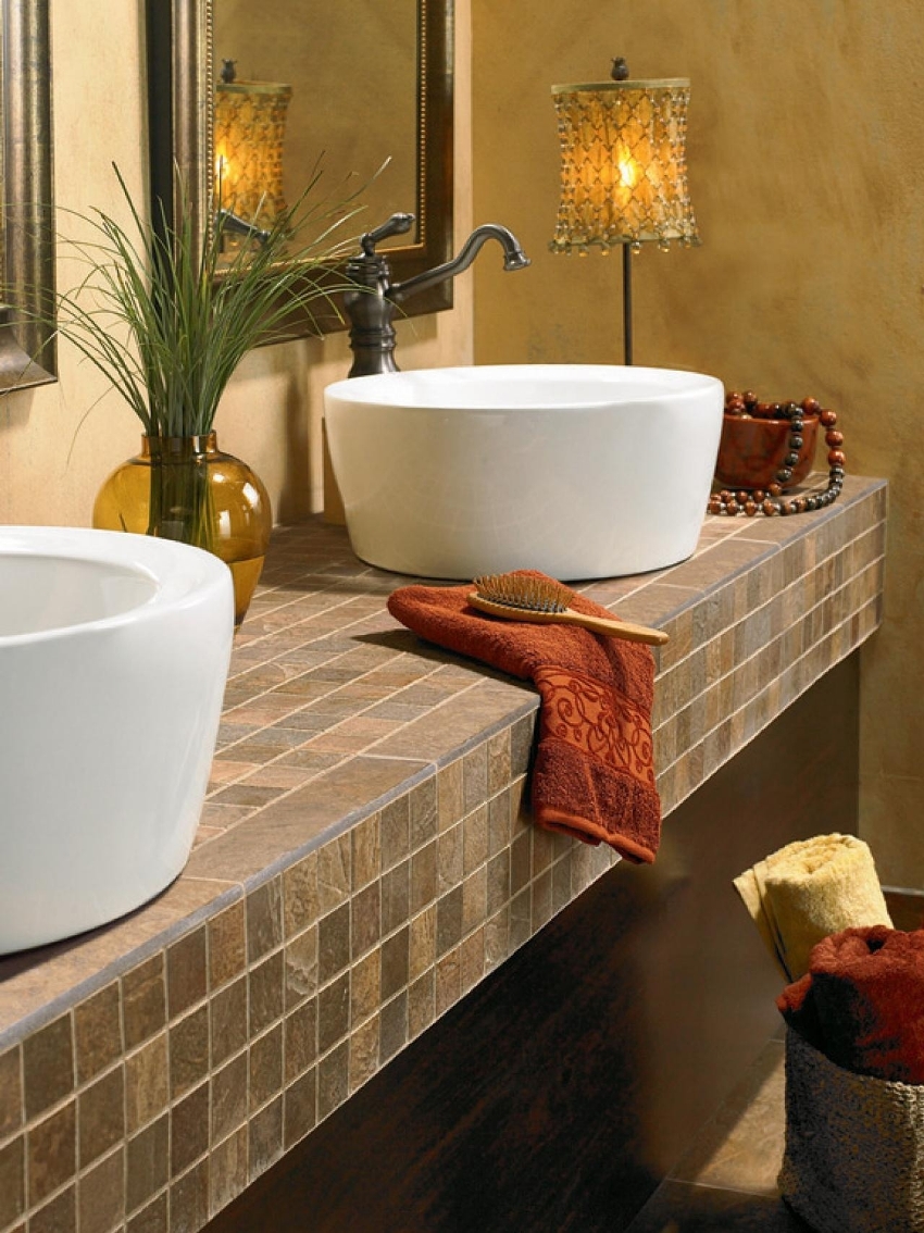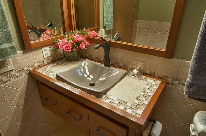 - 2.4 Tile countertop in the bathroom: affordability and decorativeness