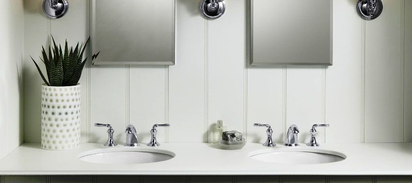 - 2.1 Features of the countertop in the bathroom made of artificial stone