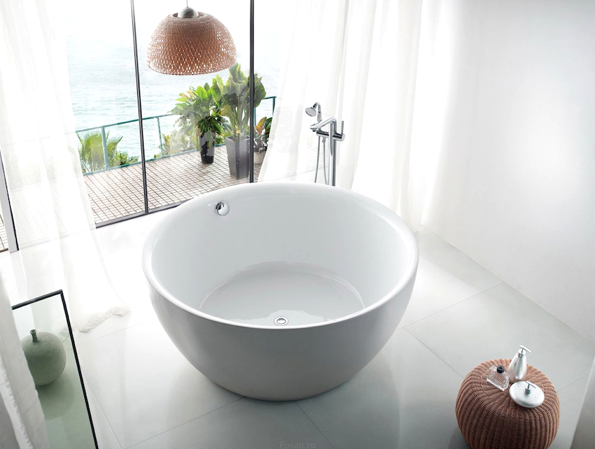 Useful advice! If a decision is made to install a round bath, then it is necessary to take into account the dimensions of the room, because the minimum diameter of such a product reaches one and a half meters. A small bathroom in an average apartment is hardly suitable for this, unless you perform a major redevelopment.