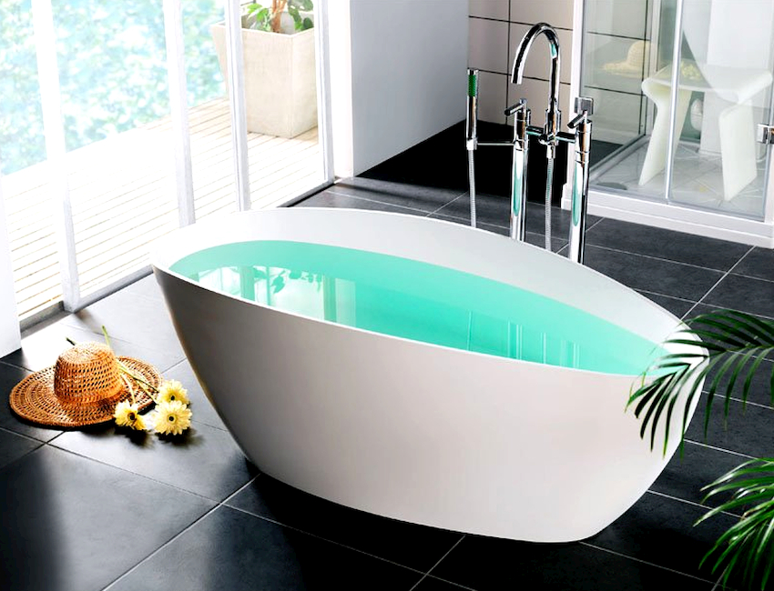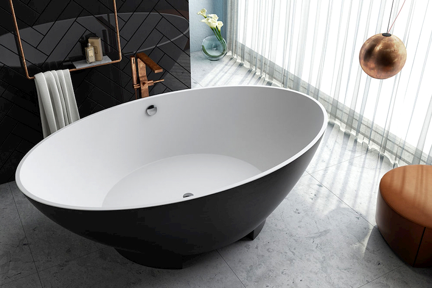 The most popular now are freestanding acrylic oval baths. This is due to the fact that this material synthesized a number of positive qualities of natural analogues. It's light as steel, slowly gives off heat like cast iron, and looks beautiful like marble. The main disadvantage of an acrylic oval bathtub is the fragility of operation due to the weak strength of the material and coating.