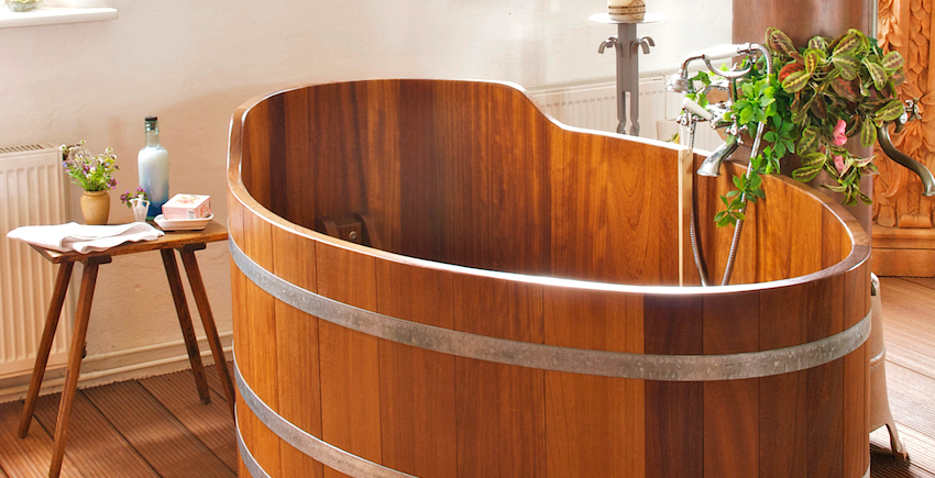 Freestanding acrylic, steel and cast iron baths are the most popular. Copper products are less common, and glass, wooden or stone baths are exotic.