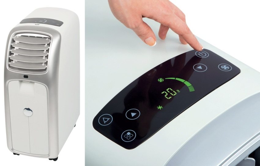 Mobile - in such an air conditioner, all the elements are collected in one case, which can be freely transferred from room to room. Unlike the window system, this structure can not only cool, but also heat the air, and is also controlled by a remote control. Of the minuses - a high noise level and the need to make a hole in the wall to bring the air outlet to the street.