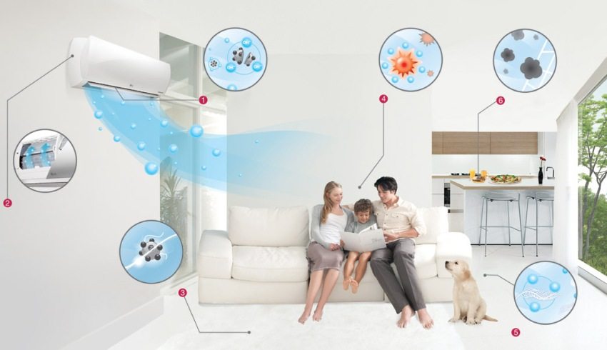 Split system additional options: 1 - air ionization, 2 - automatic cleaning, 3 - antibacterial filtration, 4 - antiviral filtration, 5 - odor elimination, 6 - anti-allergenic filtration