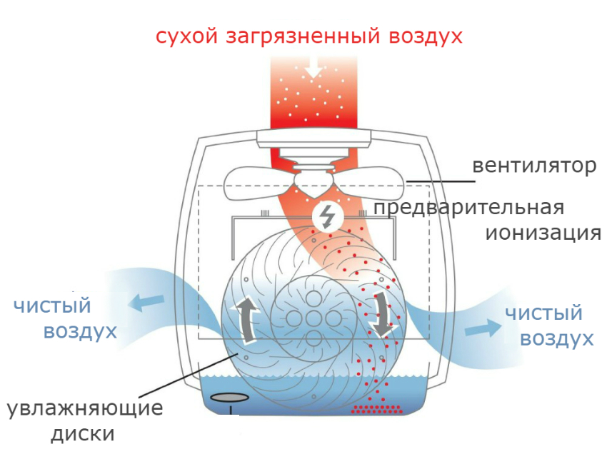 Traditional devices remove dust particles from the air during humidification. Cleaning is carried out by blowing air through humidifying cartridges. The disadvantages of structures include high noise levels.