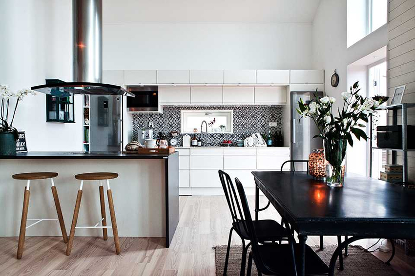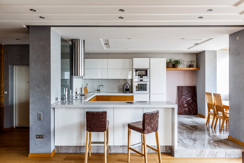 Until recently, the kitchen was most distinguished by its standard and tradition: cabinet furniture along the walls, including wall cabinets, a work surface and a dining table. The structures were modernized, pull-out pencil cases appeared, volumetric drawers instead of shelves, bar counters, various sliding and folding elements.