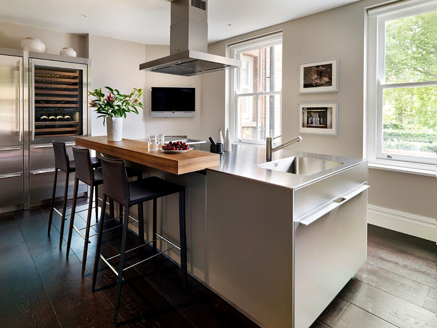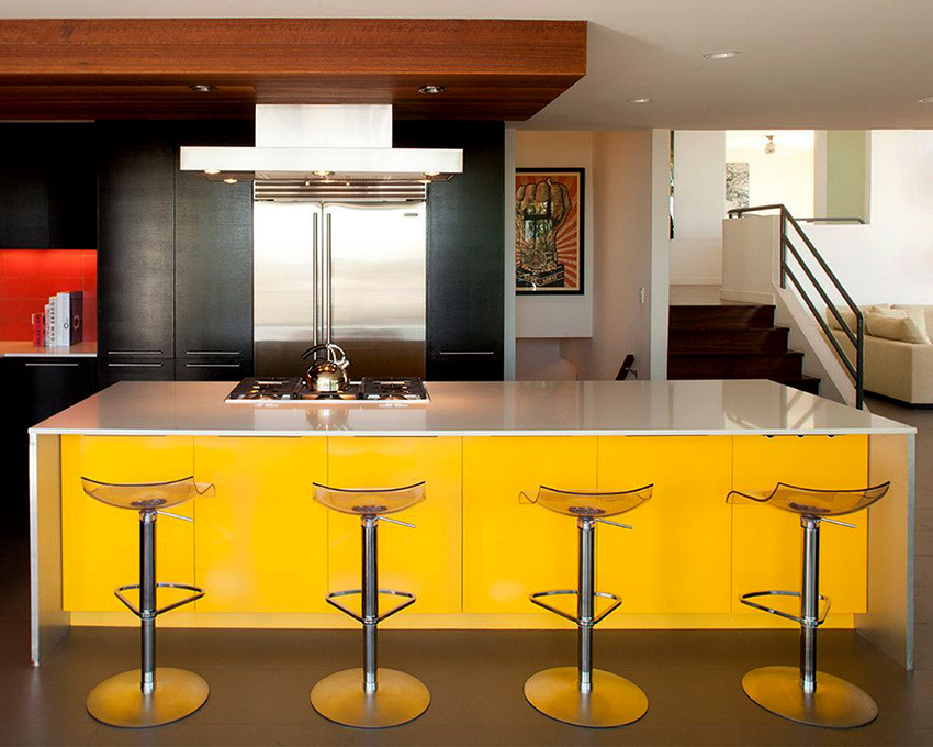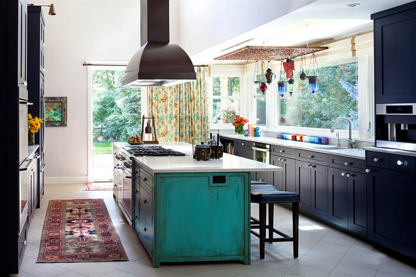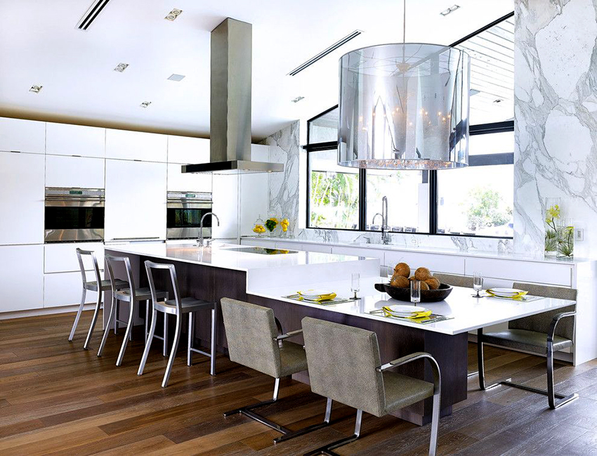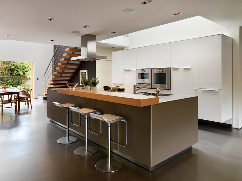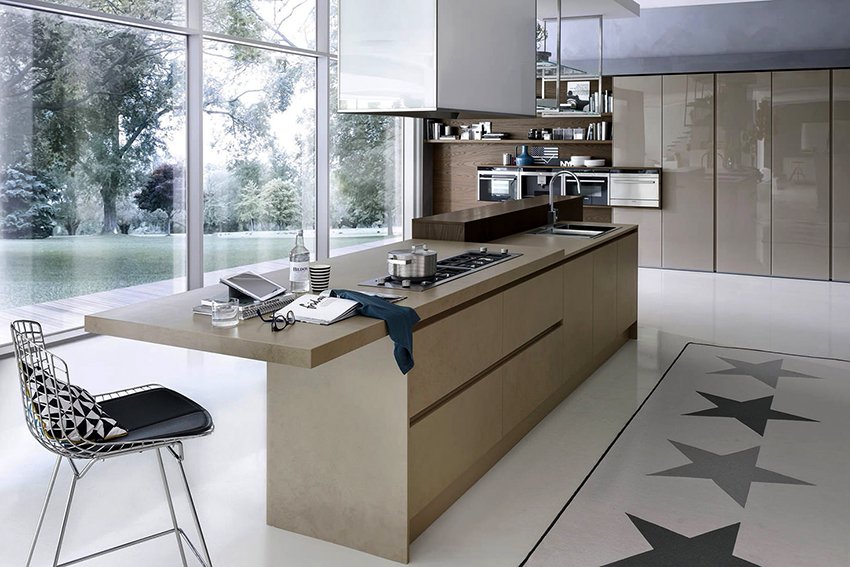 Island kitchens have become the real know-how of the kitchen interior industry. Their peculiarity lies in the fact that a significant part of the working surface from the wall moved to the central zone of the room or moved to one of the sides, but it certainly became a free-standing piece of furniture, like an island. The birthplace of this method of furnishing a room is Italy.