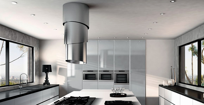 As for the functionality, there are no restrictions. Island hoods can be connected to common exhaust ducts or have an independent hood. Often in island kitchens, a false ceiling is installed, along which ventilation ducts are laid. Quite a large number of cylindrical models are combined: they have recirculation and flow-through air purification systems.