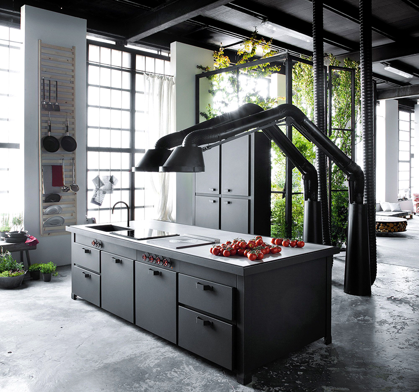 Round cooker hood for the kitchen: from timeless classics to brutal loft
