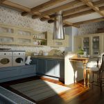 - combination with household items and rounded appliances in the kitchen: dishes, sink, multicooker, etc .;