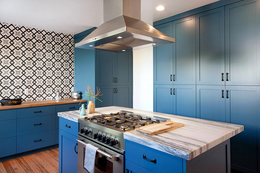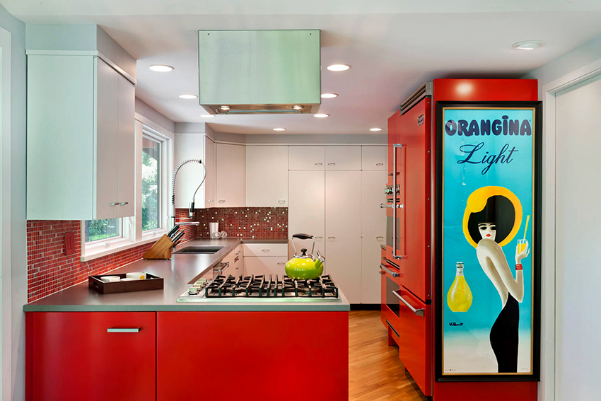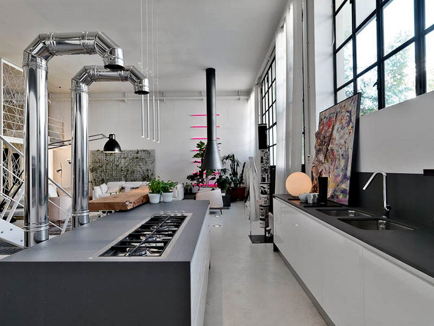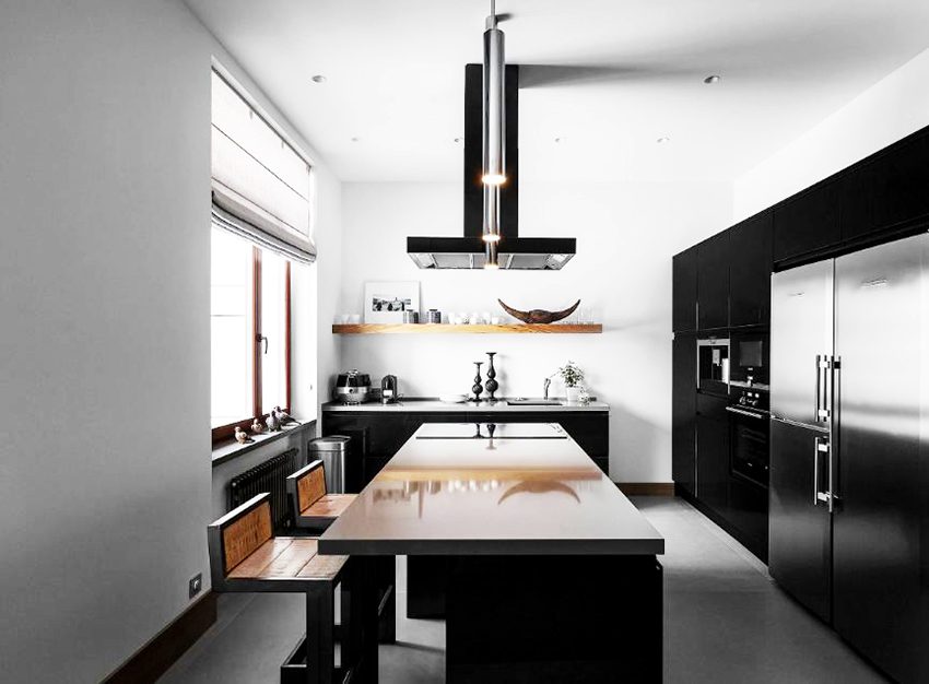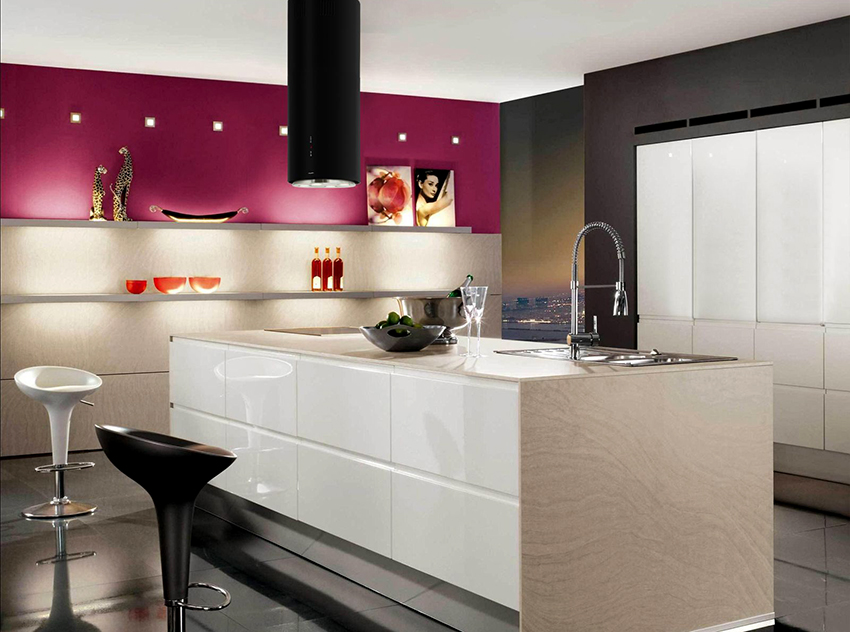After viewing the photo of kitchen hoods in the interior, it is easy to notice that cylindrical models are more appropriate in a functional hi-tech style, verified modernity, and modest minimalism.