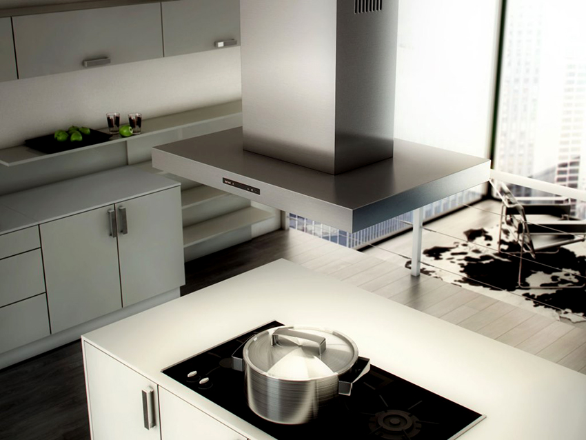 Island-type kitchens are often equipped in spacious rooms. Separate work surfaces also have significant dimensions. According to their dimensions and in accordance with the required functionality, an air cleaning unit is selected. The most acceptable model of an island-type hood in such conditions is a dome.