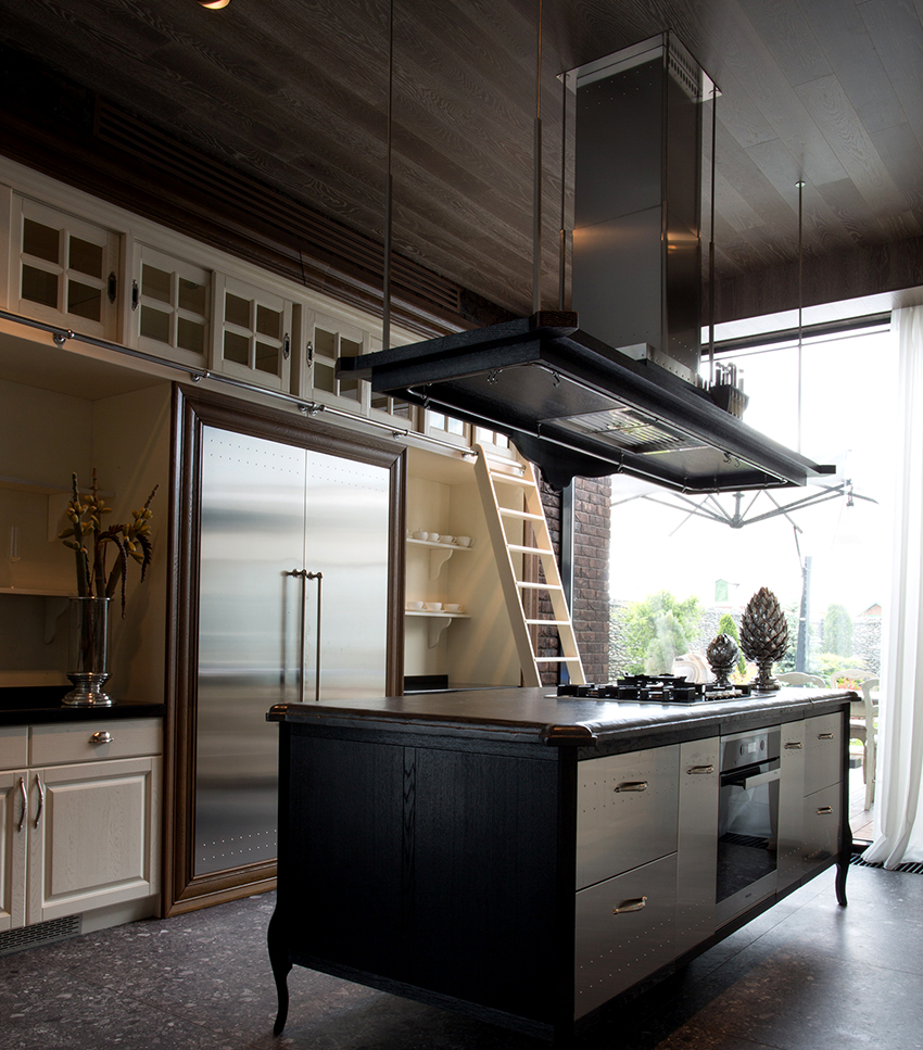 The design of kitchen furniture more and more clearly expressed belonging to a certain style of decoration, an extractor hood played an increasingly significant role in the interior. Previously built into parts of the furniture structure, it has become an independent element, increased in size and acquired a wide variety of forms.