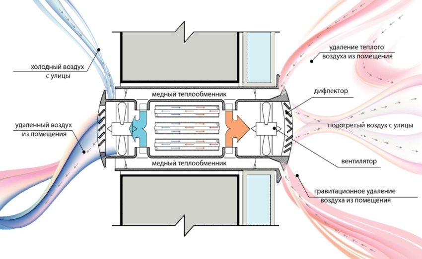 - ventilation pipes air is drawn from the rooms. Then it blows through the air ducts into the central channel, after which it comes from the room back to the street;