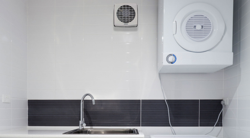- Built-in - installs directly into the wall. Such a model can be practically invisible, while being much better protected from the harmful effects of moisture and dust than the overhead fan mounting option.
