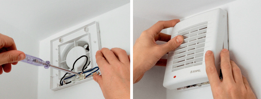 - If special holes are provided in the design of the wall-mounted exhaust axial fan, then the device can be fixed using dowels.