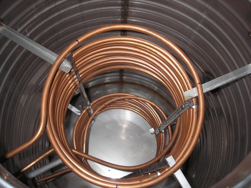- mount the coil inside the tank along its walls or in the center. Solder the pipes to both the inlet and outlet pipes of the tank;