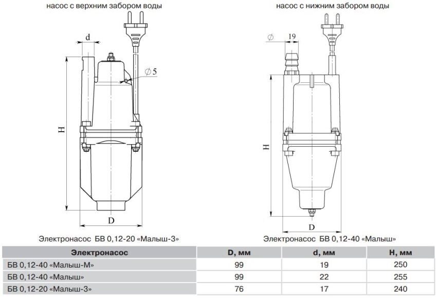 At a relatively low price, the technical characteristics of the Malysh submersible pump quite satisfy the needs of a modern user: