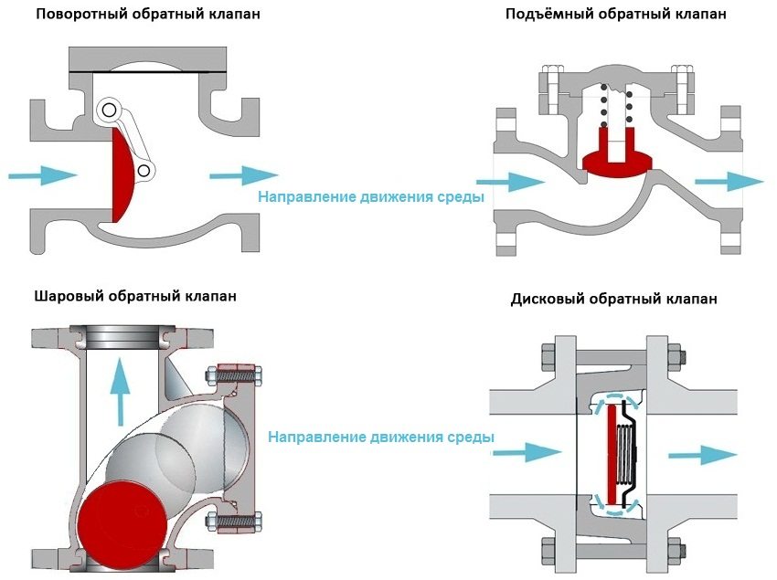 In the main pipelines of centralized water supply, petal, poppet, leaf, ball and interflange check valves are used. Flanges and flanges on tie rods are used to connect large diameter fittings. For the installation of check valves in a pipe distribution made of propylene pipes, contact heat welding is used.