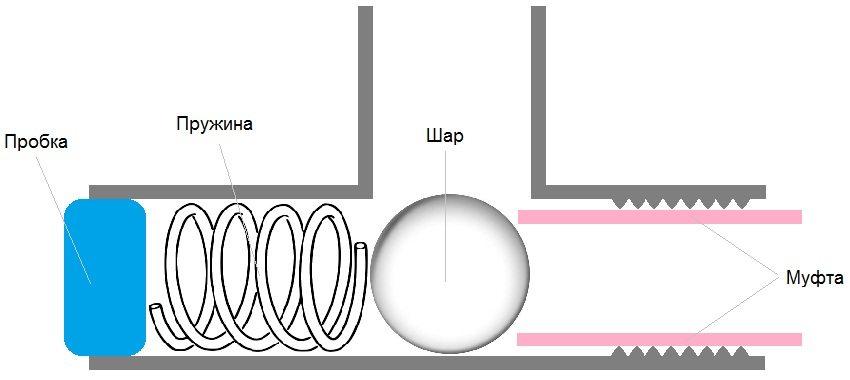 A distinctive feature of the water check valve device with a spherical shape of the spool chamber is a large flow capacity compared to traditional fittings.
