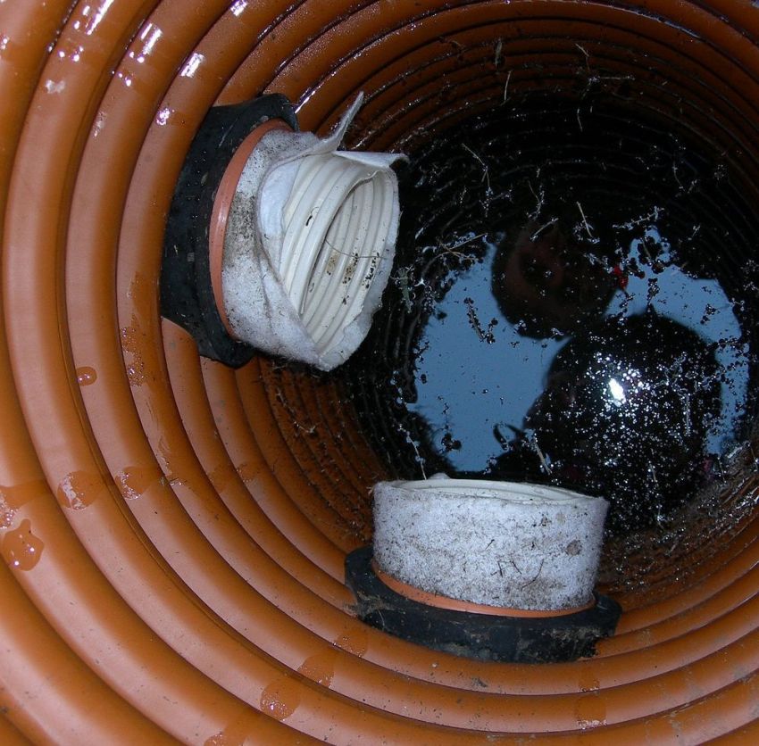 Threaded, groove and silicone gasket connections create virtually maximum tightness for the plastic collecting pipe. Seams between concrete rings are sealed with cement mortar, which degrades over time.