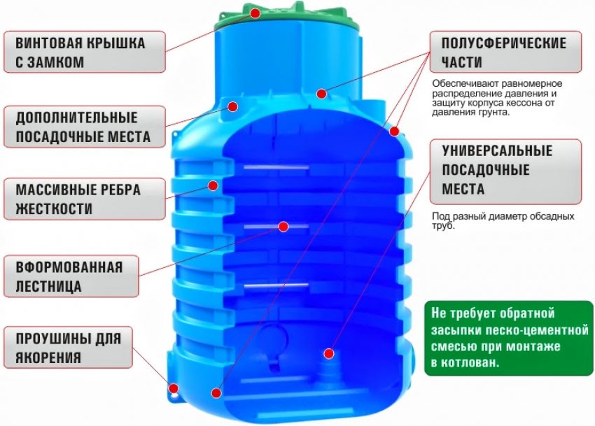 - modern plastic caissons have no seams and joints, which makes them more durable and significantly reduces the risk of damage during use.
