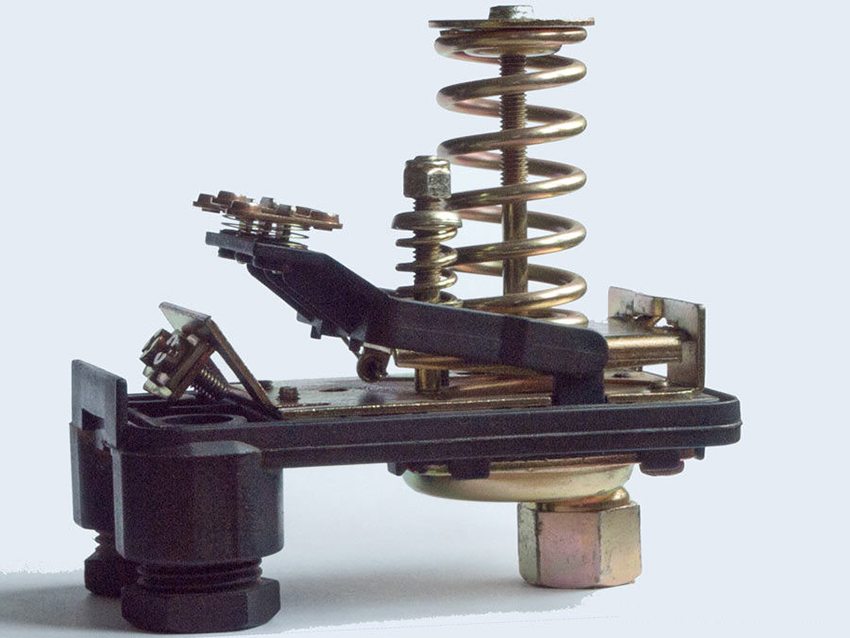 The pump control unit looks like a small plastic box. The device is mounted at the entrance to the storage tank. The pressure switch for the accumulator consists of a mechanical and an electrical part.