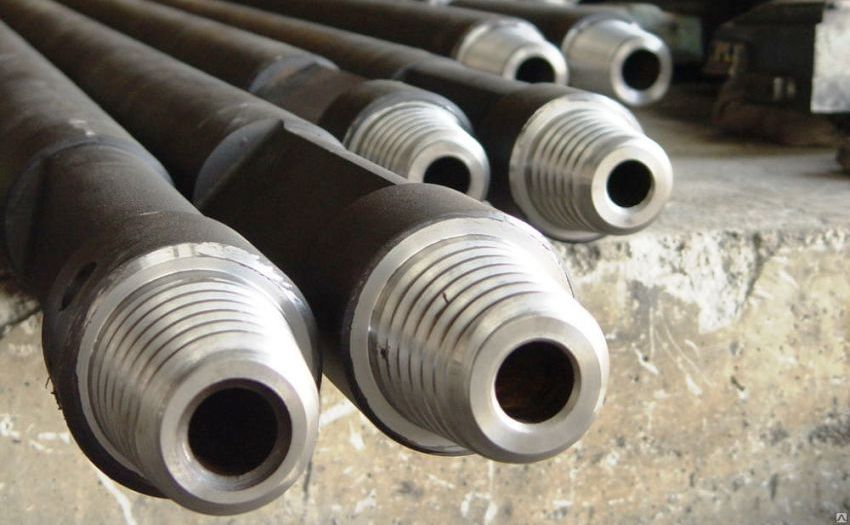 - barbell. It is used for percussion and rotary drilling. On it, a tool is lowered to the bottom of the hole, while it rotates, drilling is carried out, with its help, destroyed rock is extracted to the surface. The rods are subjected to compressive, tensile, bending and twisting loads. As this tool, you can use square or round steel rods, as well as water pipes with a reinforced wall.