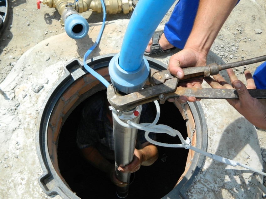The equipment is lowered into the well using a wire rope. The distance from the pump to the bottom is 1-3 m (depending on the system and conditions). If the equipment does not have a check valve, this element must be installed. Before fixing the cable and lowering the pump, a HDPE pipe with a diameter of 32 mm is attached to it.