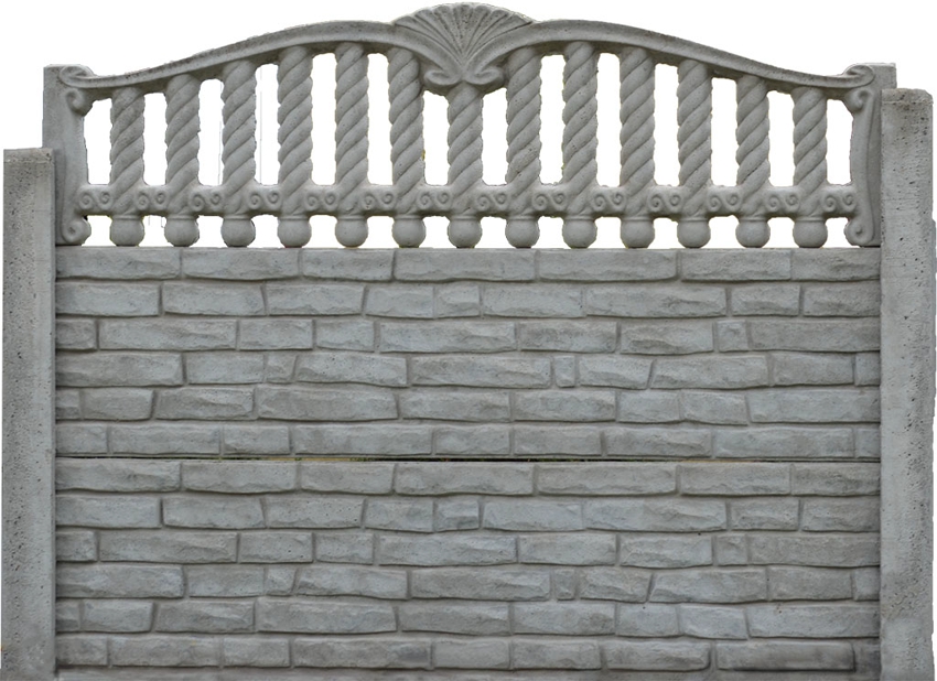 Fence concrete slabs can be made in the form of solid or lattice products or braids with voids. The sections are one- or two-sided. More than 300 types of products can be obtained depending on the forms used. The use of vibration casting technology allows to obtain durable products with an even smooth surface that does not allow moisture to pass through, providing increased frost resistance. The minimum service life of concrete sections is 25 years.