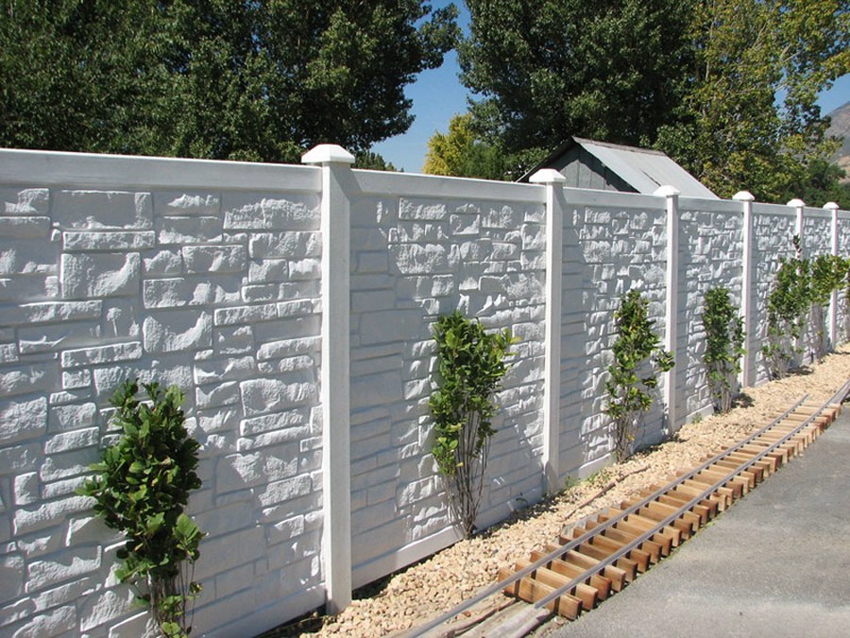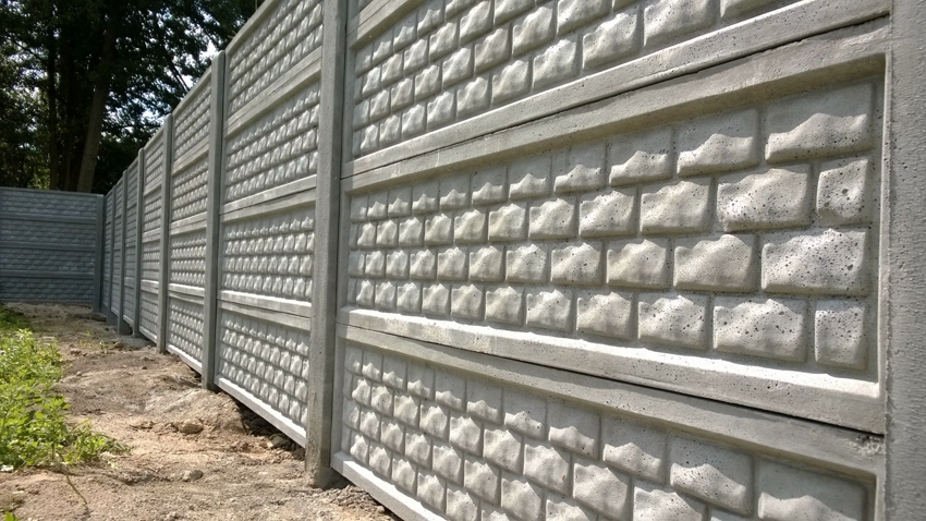 Fences made of concrete slabs are very popular among owners of private territories, due to the fact that they have a lot of advantages. Concrete enclosing structures are robust, reliable and durable. The products are equipped with a metal base, which is reliably hidden in concrete layers. Such a fence is capable of withstanding significant mechanical loads.
