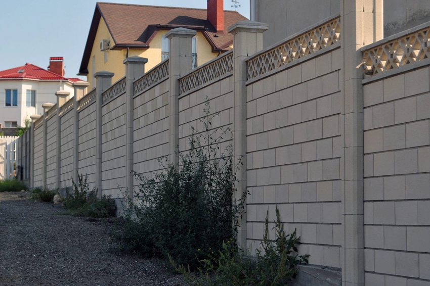 Concrete sectional fences are very popular due to their high technical and operational characteristics, ease of installation, a variety of textures, designs and colors of components. An indisputable advantage is the affordable price of concrete pillars and slabs, as well as the durability of the structure.