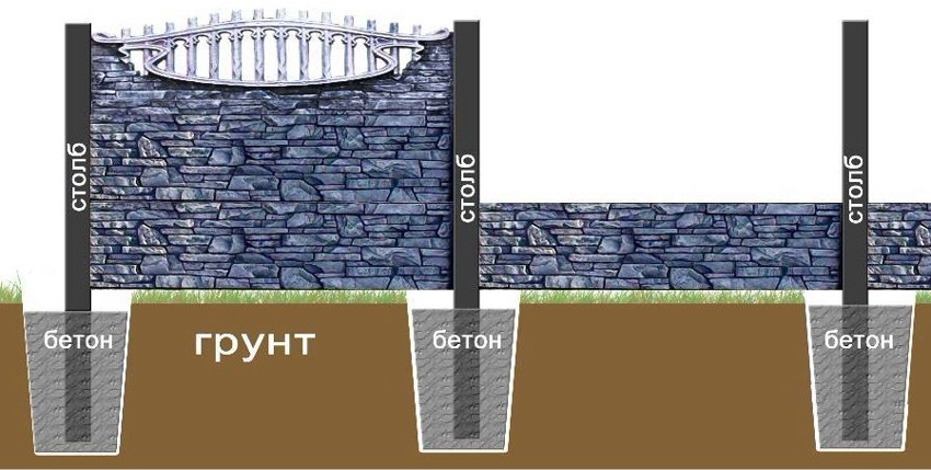 Support structures can be round, square, triangular or multi-faceted. Based on the method of securing sections to them, the pillars are produced with longitudinal grooves, metal hinges and embedded timber bars. The fixing option depends on the type of fence. When installing monolithic fences, mainly supports with groove joints are used.