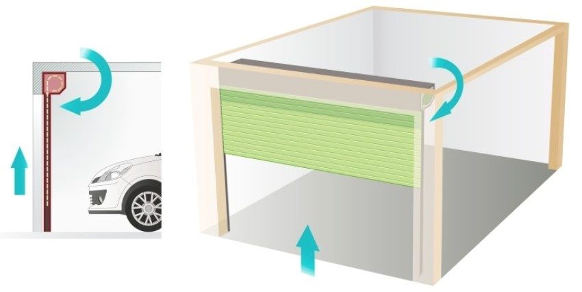 - external roller shutters (or overhead) - are installed outside the garage, and the box is attached above the doorway;