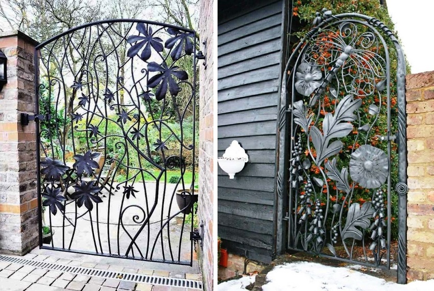 Note! Another advantage of such products is that they are universal designs. Wrought iron gates can be used in combination with fences made of various building materials such as brick, polycarbonate, corrugated board, and wood.