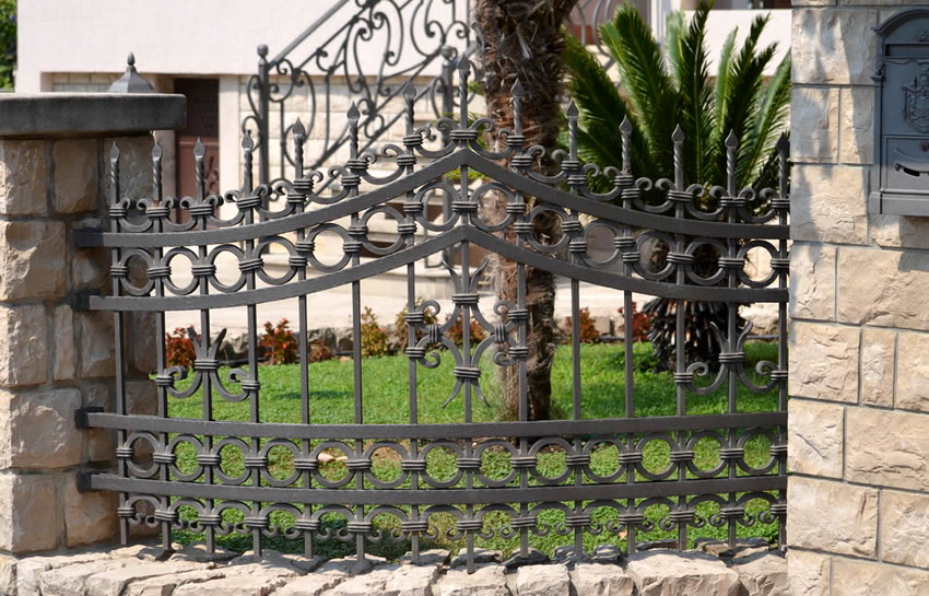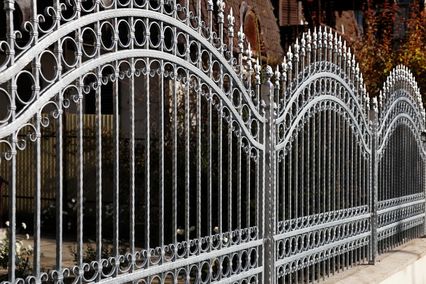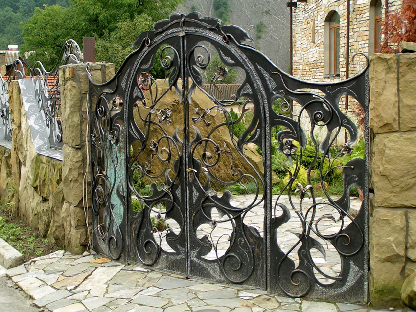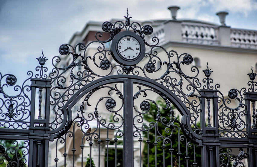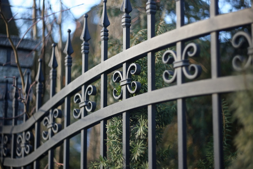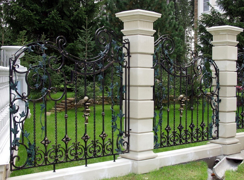 It is required to select in advance a suitable gate for a wrought-iron fence. They can be of different types, but the most popular are swing and sliding sashes.When installing a fence, it is worth remembering that it should not be located in the immediate vicinity of the road. The minimum distance in this case is 1.5 m.